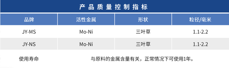 JY-MS和NS是重油加氫脫硫脫氮催化劑。適用于重油和其他劣質餾分油的加氫處理工藝,其主要作用是進一步去除原油中的雜質硫,并適當去除氮和殘碳。 JY-MS催化劑是一種過渡性脫硫催化劑,金屬容量高,孔徑大,孔容和比表面積大,酸度適宜,可實現脫金屬催化劑和脫硫催化劑之間的性能過渡。 JY-NS是一種高活性脫硫催化劑,具有高孔徑、合適的孔徑和酸度,具有較高的脫硫性能和適當的脫氮脫碳性能。